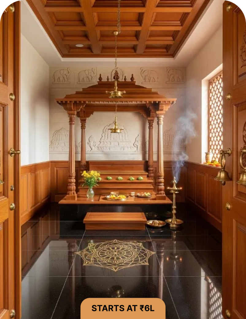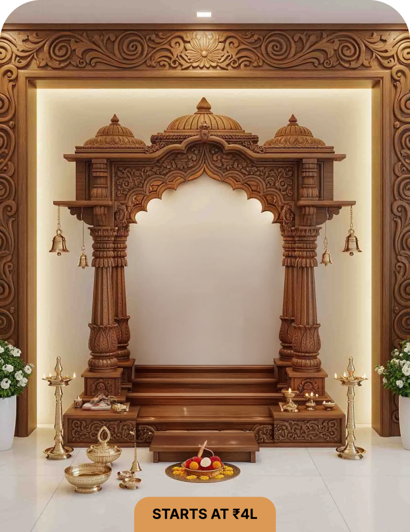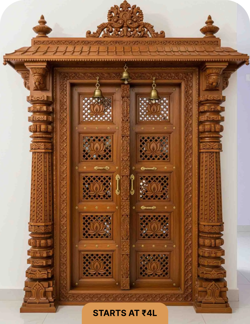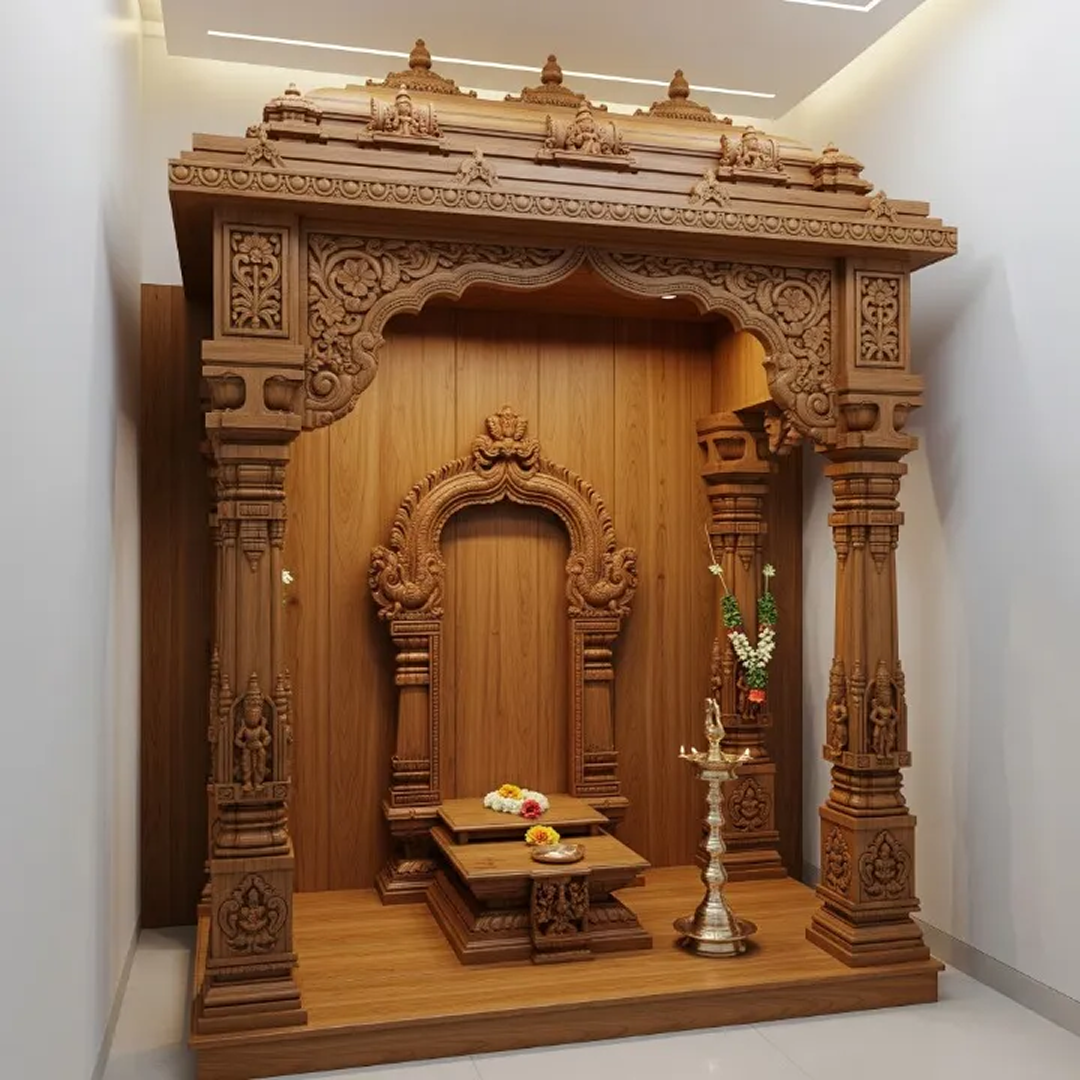Every premium pooja mandir we craft begins with you, your ideas, your traditions, your way of worship. From there, our master artisans in Tirupati, who have carried forward generations of skill and devotion, bring your vision to life through timeless pooja mandir designs.