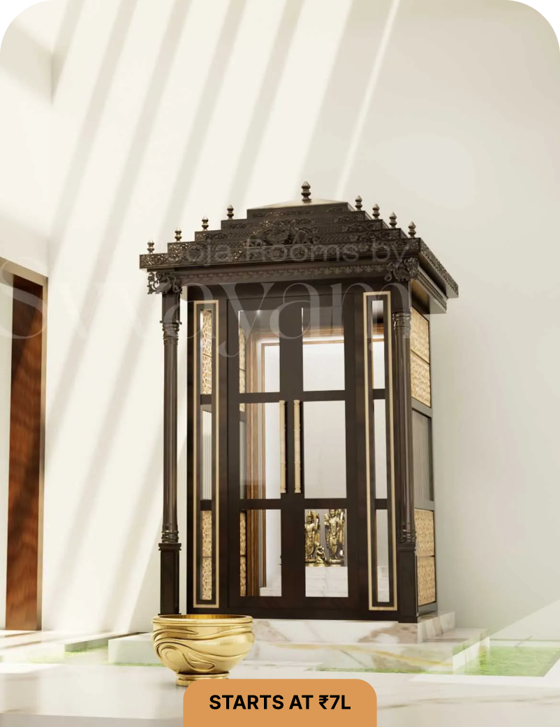 At Svvayam, we understand that a sacred corner in your home deserves more than just design; it deserves meaning. As a luxury design-first atelier, we are material agnostic, giving us the freedom to shape custom pooja mandir creations that reflect your vision, without boundaries.